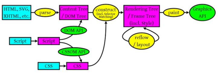 从这个图上来看浏览器解析主要做三件事: